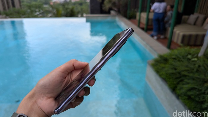 Perubahan desain lainnya dapat dilihat di display yang sedikit melengkung di sisi kiri dan kanan. Foto: Virgina Maulita Putri/detikINET