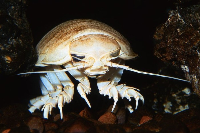 Kutu laut aksasa (Bathynomus) memiliki hubungan erat dengan udang dan kepiting. Makhluk ini biasanya hidup di dasar laut dan memiliki tubuh yang besar. Foto: National Geographic via News Beezer Β