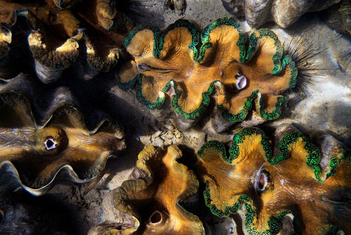 Kima raksasa (Tridacna) adalah moluska terbesar di Bumi. Hewan ini bisa memiliki panjang 1,2 meter dan berat 227 kg. Hebatnya, mereka bisa hidup di alam liar selama lebih dari seratus tahun. Foto: National Geographic via News Beezer Β