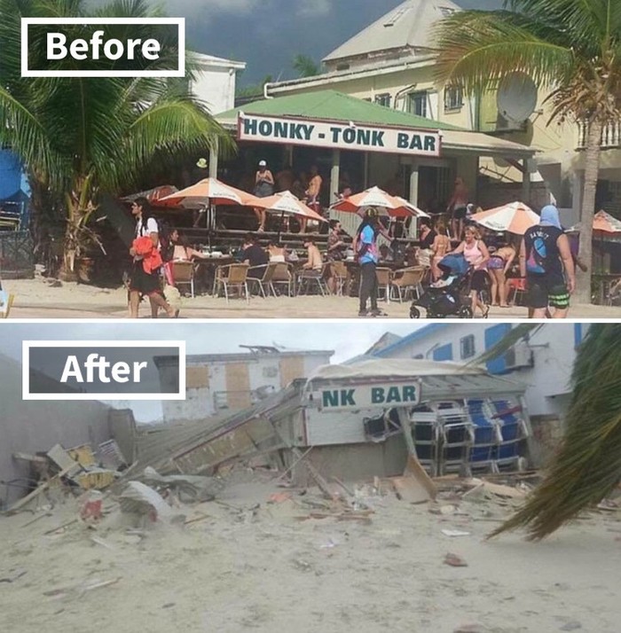 Honky Tonk Bar di Philipsburg St Martin sebelum dan sesudah badai Irma Foto: Boredpanda