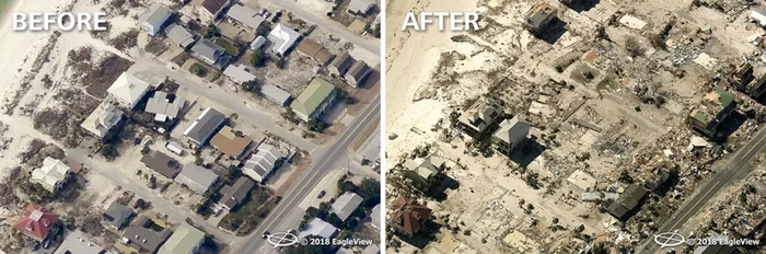Area di Florida Panhandle sebelum dan sesudai terjangan badai Micaek oada 2018. Foto: Eagleview