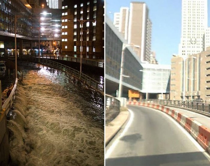 Foto sebelum dan sesudah badai Sandy yang menerjang Manhattan pada 2012. Foto NYdailynews