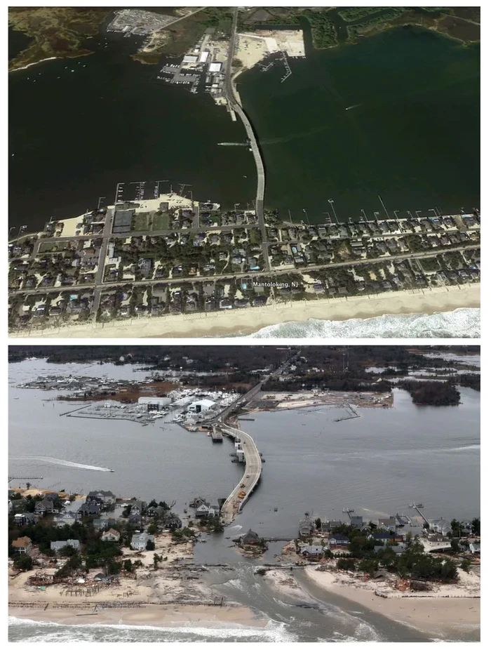 Pemandangan udara New Jersey, sebelum dan sesudah badai Sandy pada 2012. Foto: Washington Post.