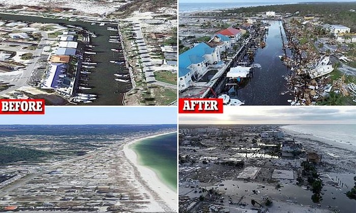 Foto sebelum dan sesudah badai Michael yang melanda Florida pada 2018. Foto Dailymail.