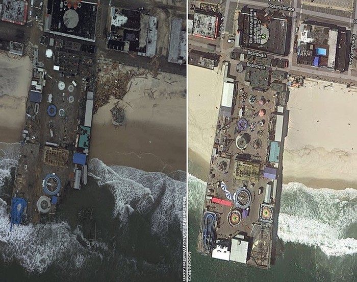 Foto sebelum dan sesudah badai Sandy yang menerjang New Jersey pada 2012. Foto: NOAA.