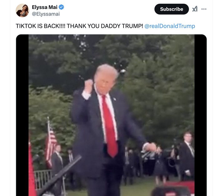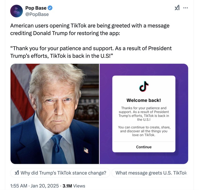 TikTok sendiri berterima kasih pada Trump sehingga saat ini bisa kembali online di AS.Β Foto: X.com