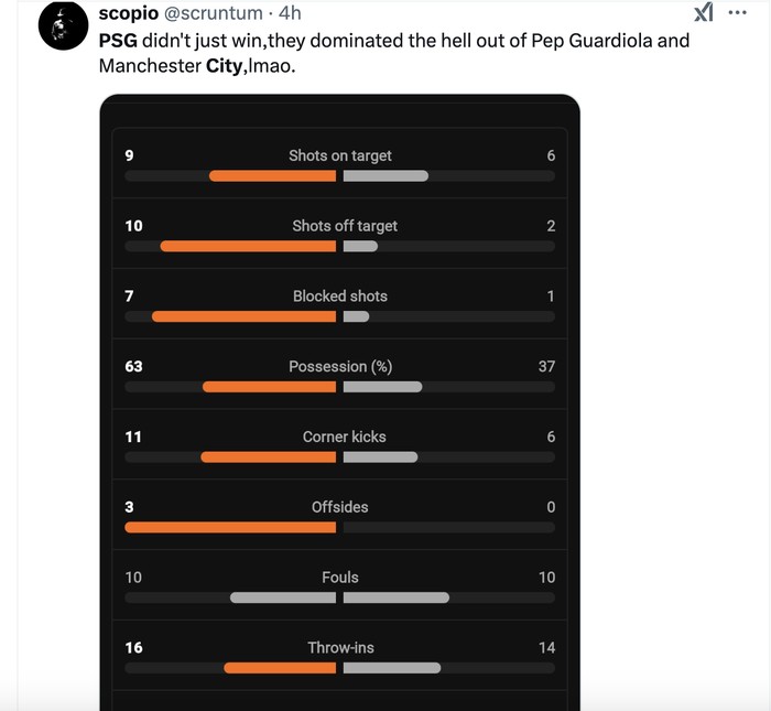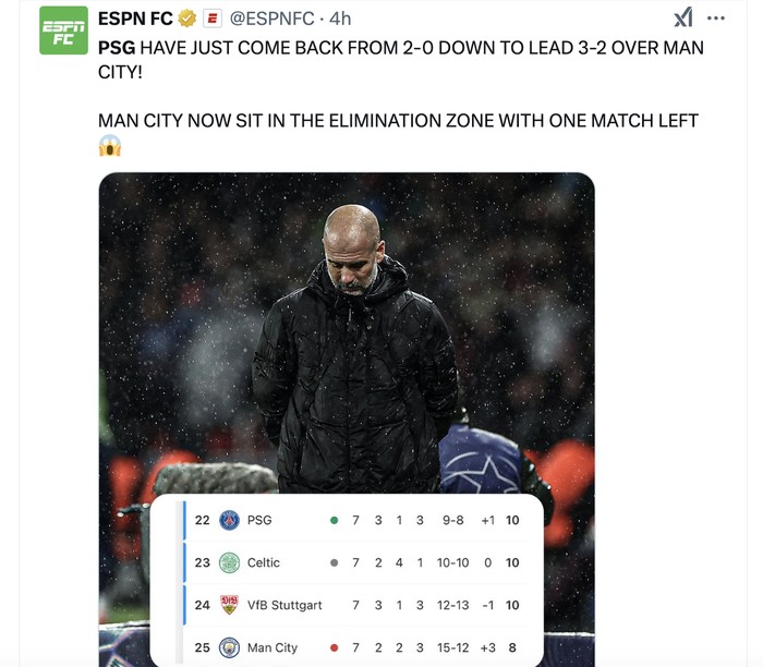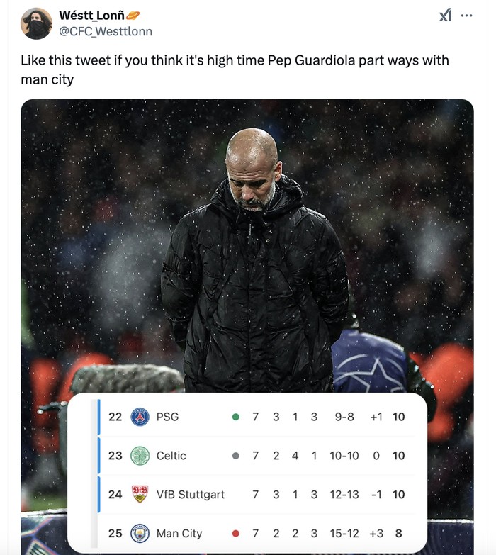 FotoINET Meme City Dihabisi PSG, Guardiola Pusing Pool - detikInet Kamis, 23 Jan 2025 10:45 WIB Tautan telah disalin Jakarta - Manchester City kritis usai dihabisi PSG di Liga Champions. Ini reaksi di media sosial mengenai laga itu. Sempat unggul 2-0, PSG berhasil mengejar hingga menaklukkan City 4-2. Foto: X.com Posisi City di klasemen Liga Champions pun kritis karena kekalahan itu. Foto: X.com Hari-hari fans City semakin bertambah buruk karena belakangan sering menderita kekalahan. Foto: X.com Pep mengorbankan pernikahannya untuk Manchester City, namun para pemain City mengecewakannya terus belakangan ini. Foto: X.com Sungguh malam yang menakjubkan buat PSG. Foto: X.com Akun PSG di X pun mengumumkan kemenangan mereka dengan bersemangat. Foto: X.com Guardiola tentu pusing melihat City dikejar PSG hingga akhirnya kalah. Foto: X.com Belakangan ini Manchester City juga kerap disalip di menit-menit akhir pertandingan. Foto: X.com Melihat statistik ini, PSG memang pantas menang atas Manchester City. Foto: X.com Apakah sudah saatnya Pep Guardiola berpisah dengan City? Foto: X.com (/) TAGS psg vs manchester city pep guardiola LIHAT LAINNYA Tautan telah disalin