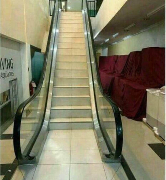 Mungkin eskalator ini masih versi beta ya. (Foto: Twitter/PicturesFoIder)