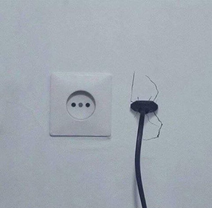 Antara temboknya yang bisa mengalirkan listrik atau cuma salah colok aja nih. (Foto: Twitter/PicturesFoIder)