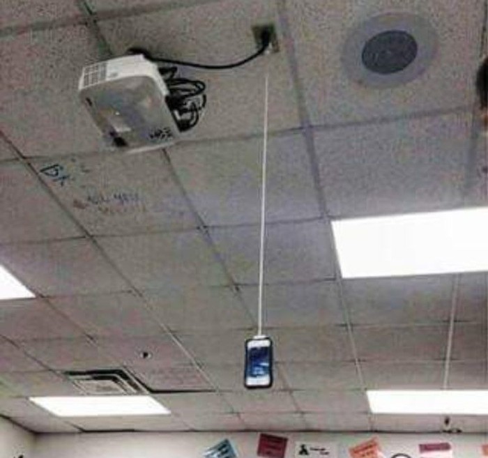 Saking fakirnya sama listrik, ponsel pun rela digantung begini. (Foto: Twitter/PicturesFoIder)