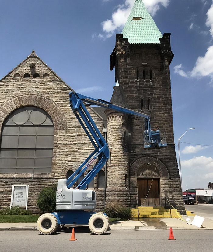 Gereja di Detroit yang baru dicuci. Sebagian orang mengira memang batu yang menyusunnya berwarna hitam. Foto: DetroitStalker via Bored Panda