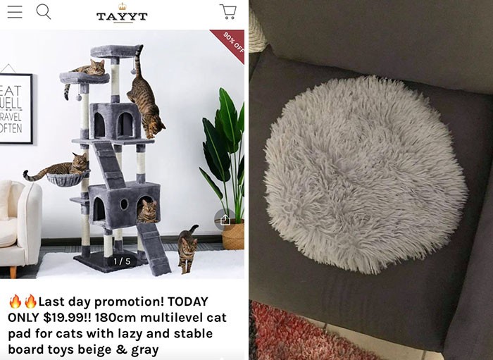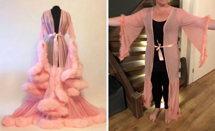 Mantel yang dipajang di toko dan setelah dikenakan, sangat berbeda jauh. Foto: Boredpanda