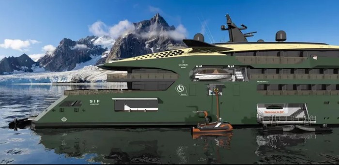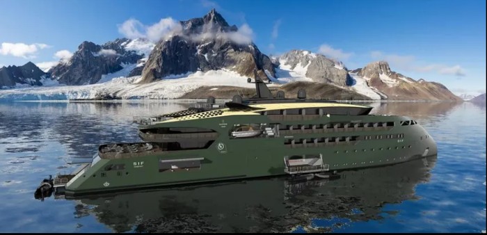 Thor akan didukung Sif, kapal pesiar ekspedisi bertenaga listrik yang dapat diisi ulang tenaganya oleh Thor. Foto: Ulstein