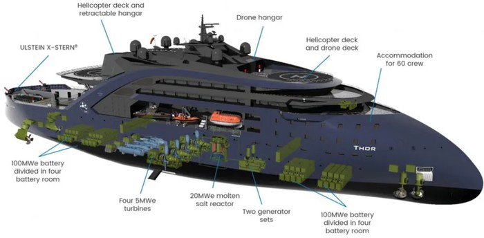 Rencananya, Thor akan dilengkapi dengan reaktor nuklir untuk menghasilkan listrik bersih sebesar 20 megawatt. Foto: Ulstein