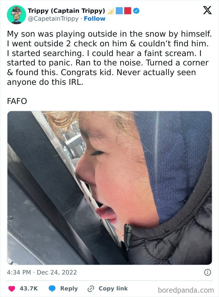 Lidahnya nempel karena cuaca di luar sangat dingin. Foto: CapetainTrippy via Bored Panda