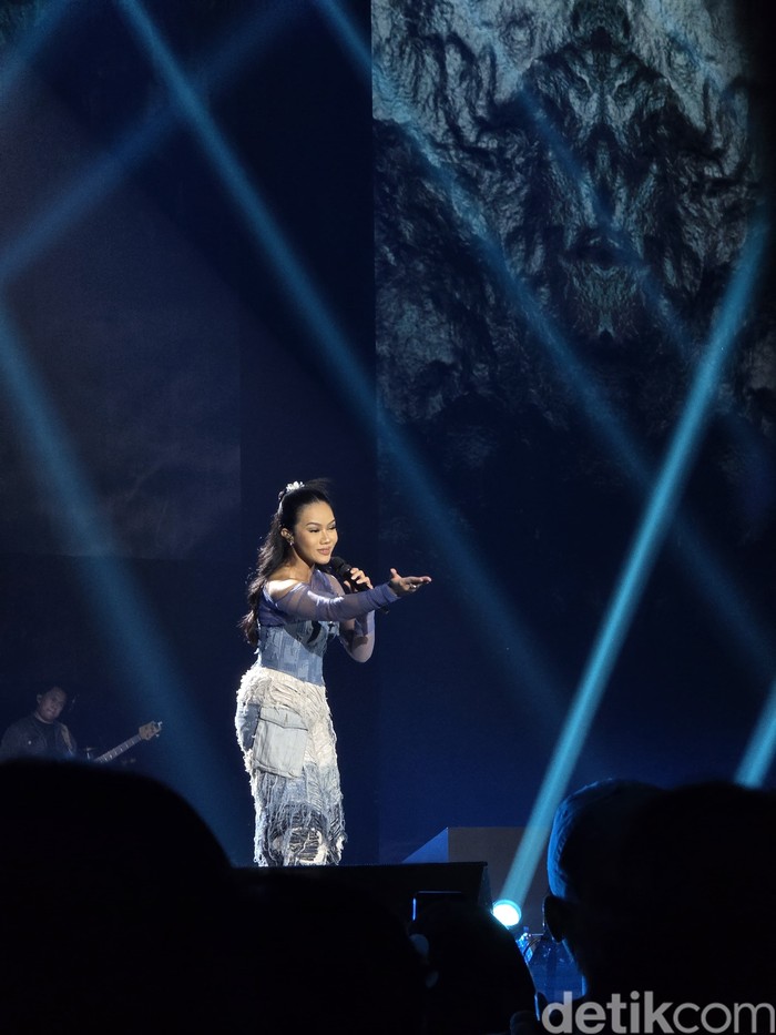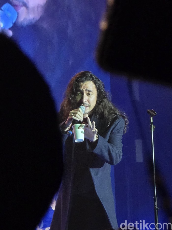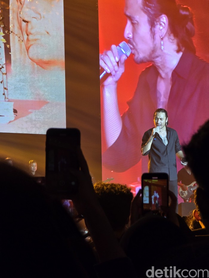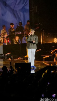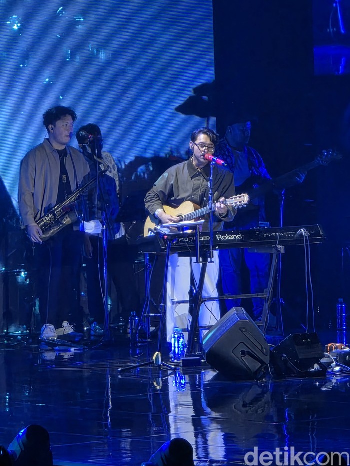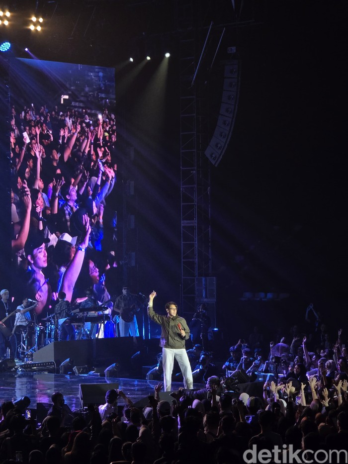 Aksi panggungΒ Ardhito PramonoΒ dapat diabadikan dengan jelas pakai zoom 10x dari bangku tribun penonton Foto: Adi Fida Rahman/detikINET