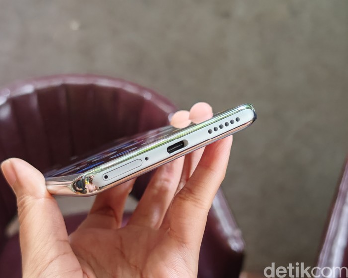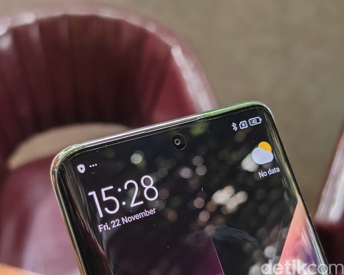 Di bagian atas layar terdapat punch-hole tempat kamera depan. Foto: Virgina Maulita Putri/detikINET