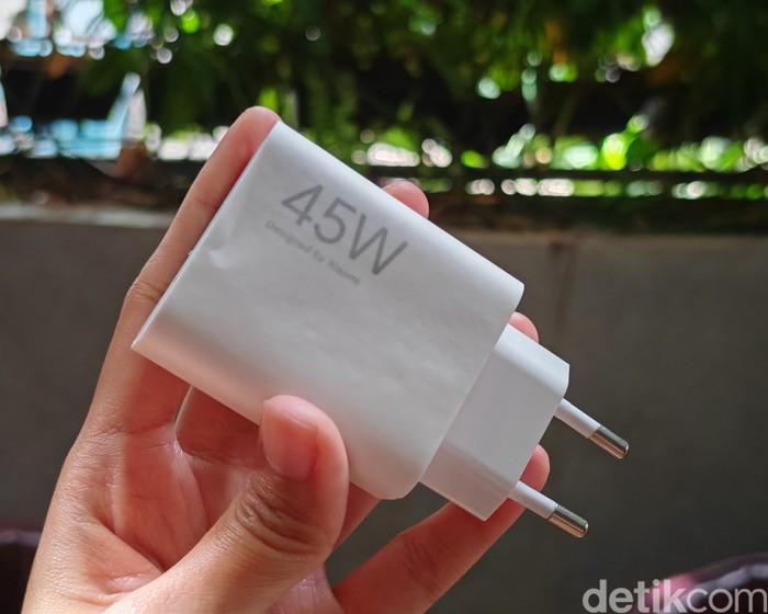 Poco menyertakan charger 45W dalam paket penjualannya yang diklaim dapat mengisi daya hingga 100% dalam 52 menit. Foto: Virgina Maulita Putri/detikINET