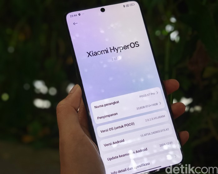 Khusus Poco X7 Pro sudah menjalankan HyperOS 2.0 berbasis Android 15. Foto: Virgina Maulita Putri/detikINET