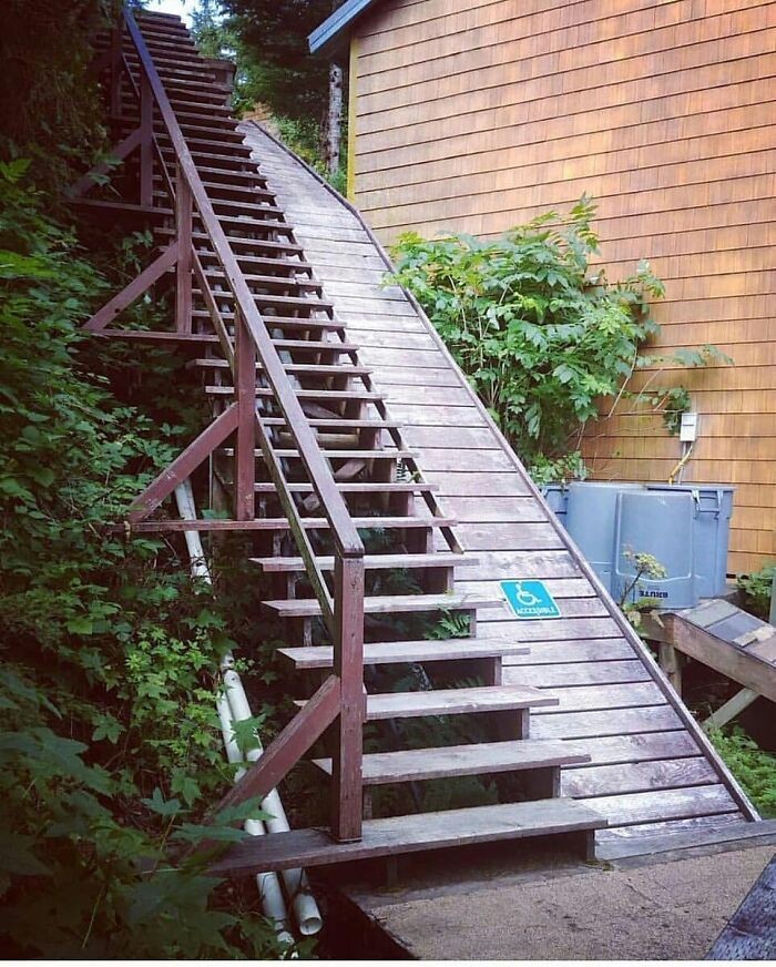 Bayangkan bawa bayi di stroller. Kalau meluncur, piye? Foto: arquitectura_fail via Bored Panda