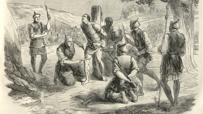 Lingchi: Juga dikenal sebagai mati karena seribu luka, lingchi mungkin hukuman mati paling mengerikan di China kuno. Praktek ini dimulai abad ketujuh saat Dinasti Tang hingga awal 1900-an. Algojo pertama mengikat terpidana ke tiang. Kemudian memakai pisau untuk membuat sayatan tubuh, mulai dari satu area (biasanya dada) hingga tulang dan jaringannya terlihat. Setelah membuat sayatan di dada dan perut, algojo melanjutkan ke lengan dan kaki dan membuat sayatan lebih besar.Β Itu menyebabkan syok dan pendarahan signifikan, dan diulangi sampai korban meninggal karena lukanya. Foto: Unwired