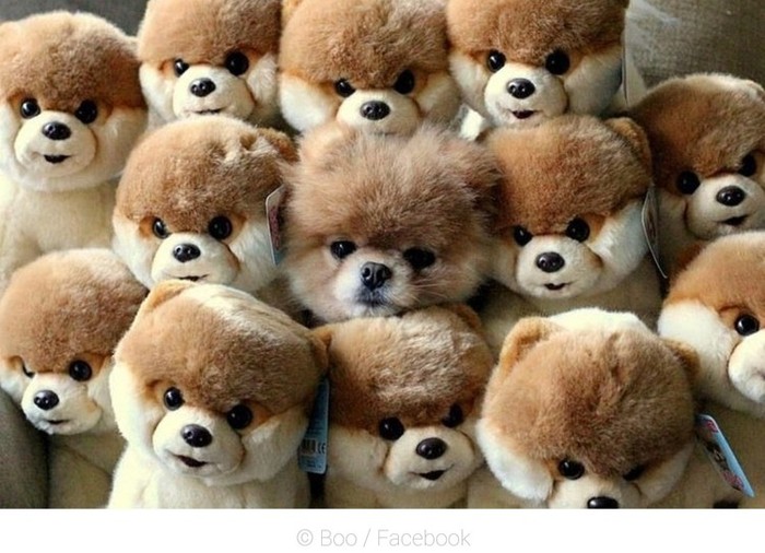 Gemasnya di antara boneka-boneka anjing ada yang asli. Foto: Brightside