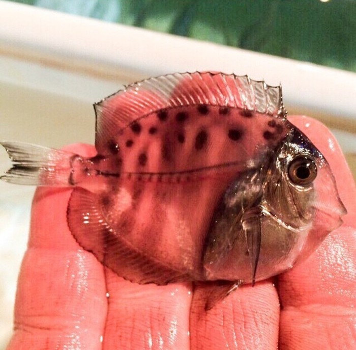 Ikan tangki tembus pandang yang hampir tidak mungkin terlihat saat berenang. Foto: Brightside