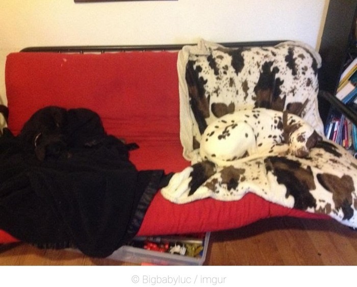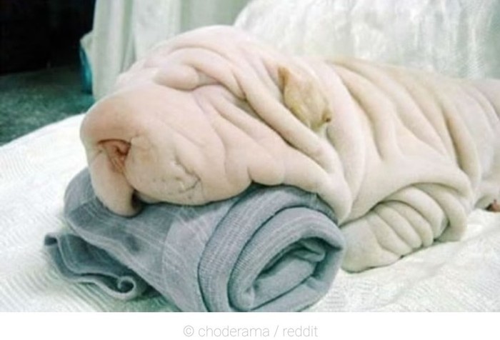 Ada dua tumpukan handuk? Ternyata bagian atas adalah anjing. Foto: Brightside
