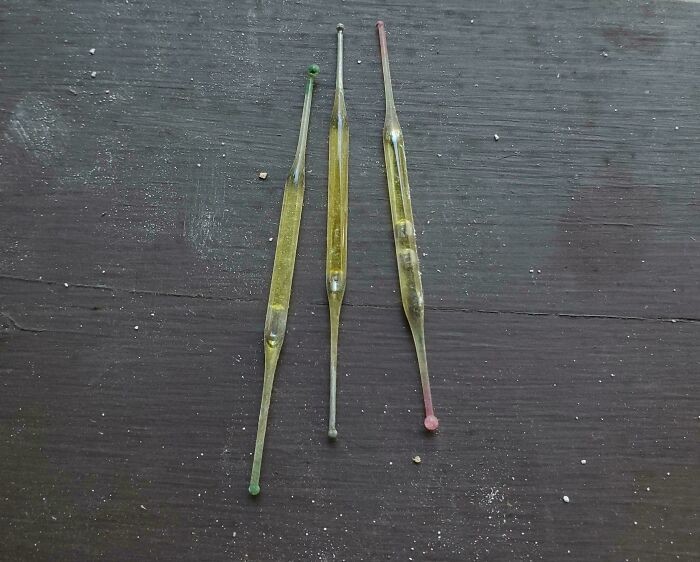 Menemukan benda ini di bagian tersembunyi kamar mandi dan ada dua benda berukuran dua inch ini. Kemungkinan ini ampul parfum zaman dulu atau biasa disebut 'perfume nips'. Foto: joesepa1805 via Bored Panda Β