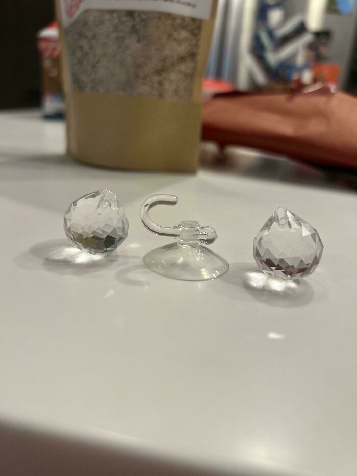 Benda-benda tersebut ialah penangkap sinar matahari atau suncatcher. Ini dipakai dengan cara menggantungnya di kaca jendela. Bila digantung di jendela, akan ada pelangi di sekitar ruangan. Foto: codykline99 via Bored Panda