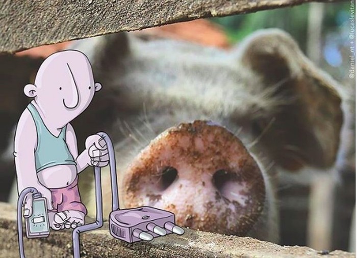 Dari foto itulah ia mulai berimajinasi secara liar dengan memasukan karakter-karakter lucu hingga konyol. (Foto: Lucas Levitan) Β