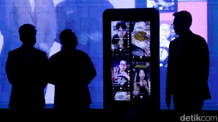 Bonifasius, Angga, serta Head of Public Policy and Government Relations TikTok Indonesia Hilmi Adrianto menyaksikan kreator konten TikTok bereksperimen.