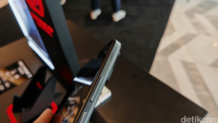Di sisi kanan ponsel terdapat AirTrigger di bagian atas dan bawah untuk mendukung pengalaman gaming. AirTrigger ini juga dapat dipakai sebagai tombol shutter kamera. Foto: Virgina Maulita Putri/detikINET