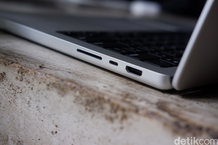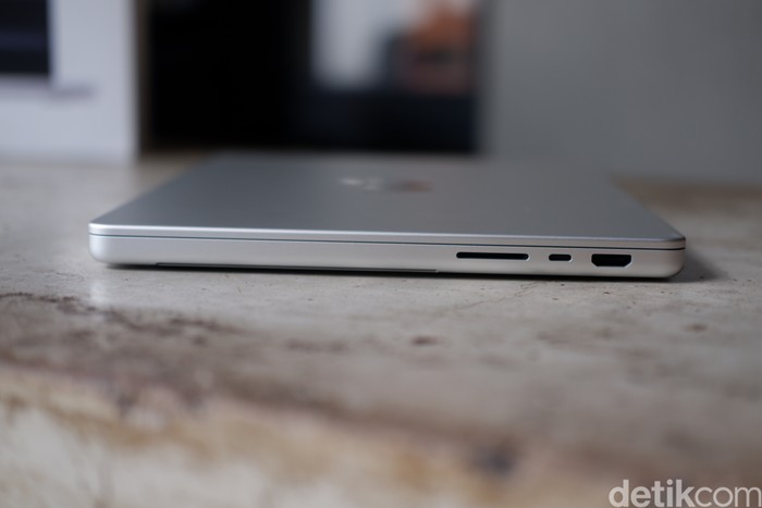 Sisi kanan terdapat slot SDXC reader, Thunderbolt 5 (USB-C) dan HDMI. Foto: Adi Fida Rahman/detikINET