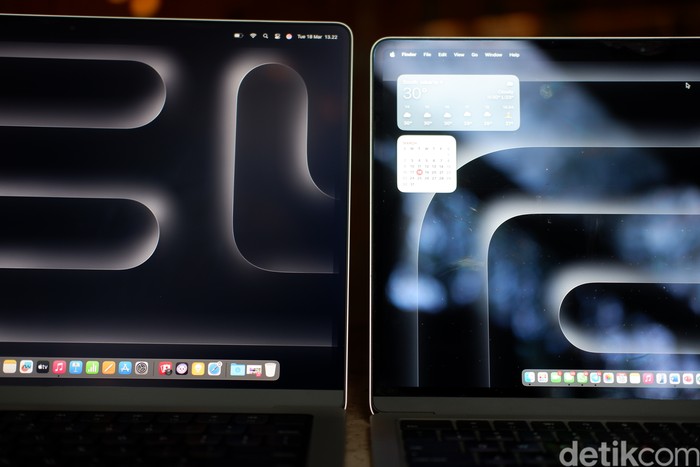 MacBook Pro M4 punya opsi layar Nano Texture ang secara signifikan mengurangi silau dan gangguan dari pantulan. Ini perbandingannya. Foto: Adi Fida Rahman/detikINET