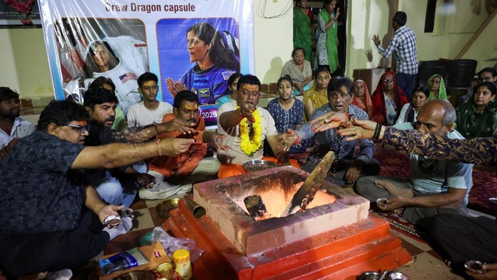 Penduduk setempat dari desa leluhur astronaut NASA Sunita 'Suni' Williams di India merayakan kepulangannya dengan selamat ke bumi, pada dini hari Rabu (19/3) pagi dengan tarian dan kembang api.