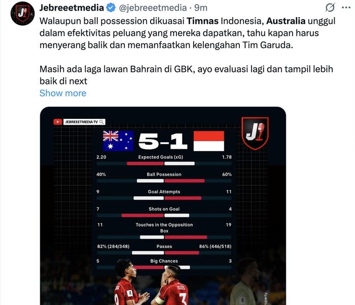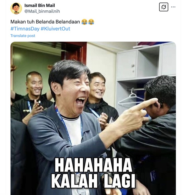 FotoINET Meme Menyedihkan Timnas Indonesia Dibantai Australia Pool - detikInet Kamis, 20 Mar 2025 20:20 WIB Tautan telah disalin Jakarta - Timnas Indonesia dicukur Australia 1-5. Berikut beberapa meme dan opini yang beredar di linimasa media sosial. Tagar #KluivertOut langsung menggema di media sosial. Foto: X.com Meme STY menertawakan kekalahan Indonesia. Foto: X.com Netizen ini menilai duet Rizky Ridho dan Jay Idzes seharusnya jangan diutak atik lagi. Foto: X.com Kebetulan STY sedang berada di Indonesia. Foto: X.com Akun Timnas Indonesia mengabarkan kekalahan telak lawan Australia. Foto: X.com STY dan Jeje ikut menyaksikan pembantaian Timnas. Foto: X.com Apa yang harus diperbaiki dari Timnas Indonesia jelang lawan Bahrain? Foto: X.com Kangen STY. Foto: X.com Masih ada laga lawan Bahrain di GBK, harapan itu masih ada. Foto: X.com 3 poin lawan Bahrain menjadi harga mati. Foto: X.com (/) TAGS indonesia vs australia LIHAT LAINNYA Tautan telah disalin