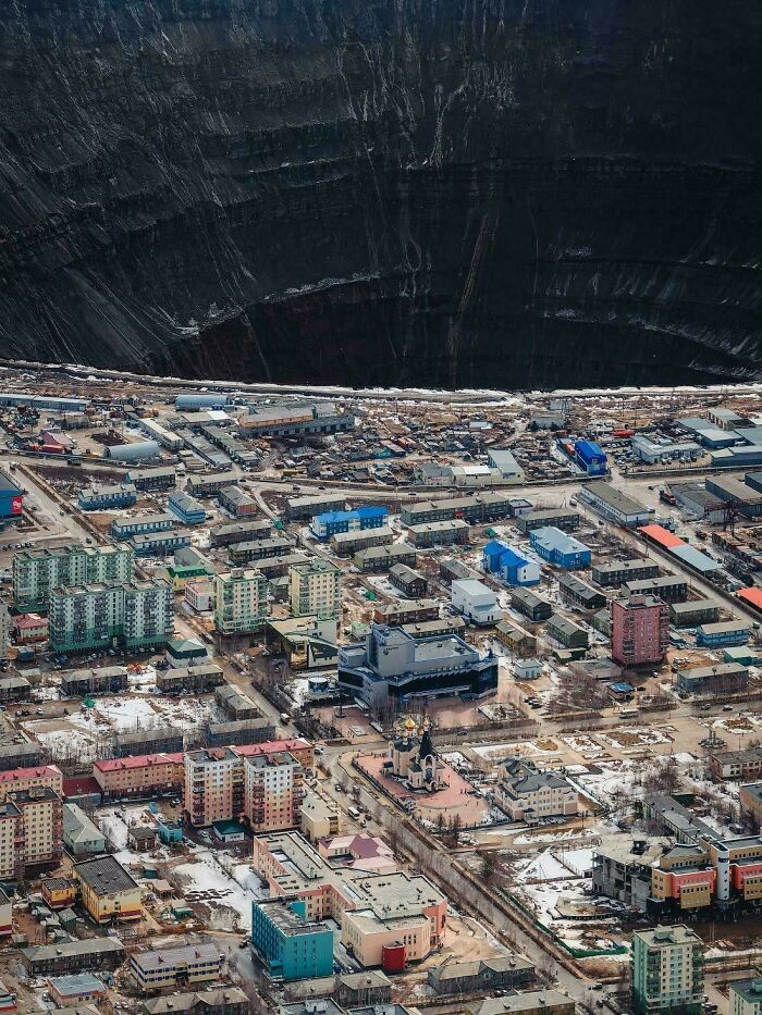 Tambang berlian di Mirny, Rusia. Merupakan tambang berlian terbesar dengan di dunia dengan kedalaman lebih dari 525 meter dan diameter 1200 meter. Namun ngerinya, terdapat pemukiman di sana. Foto: Boredpanda