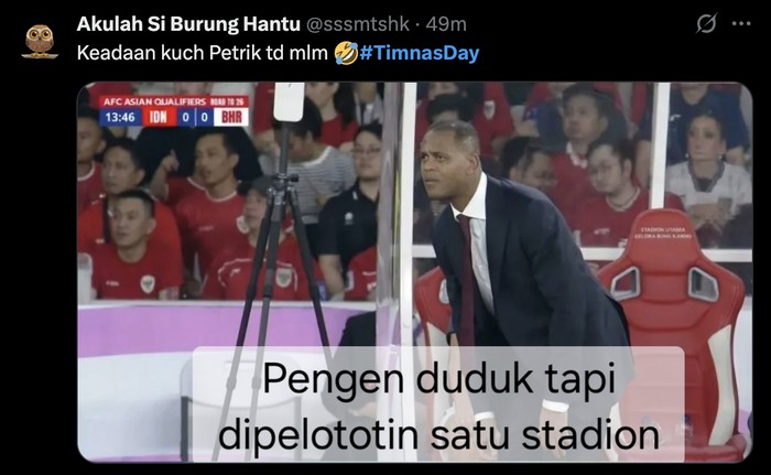 Patrick Kluivert yang pengen duduk tapi dipelototin satu stadion. Foto: X.com