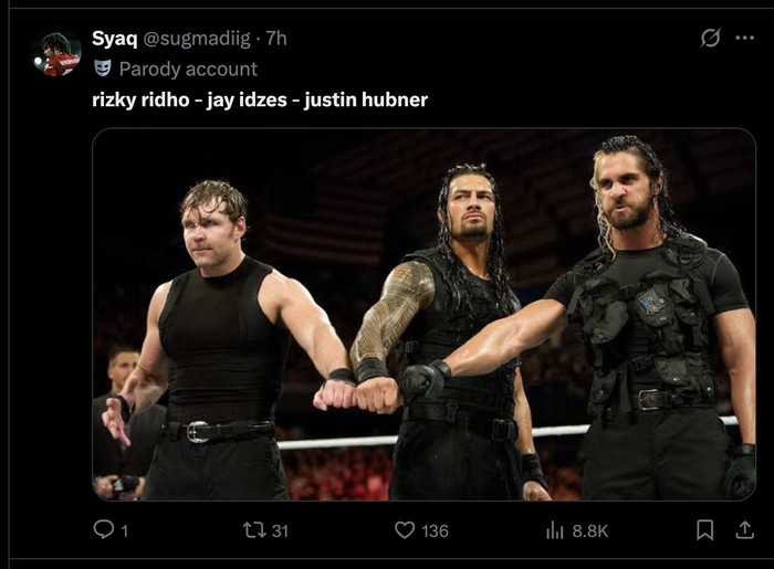 Penampilan Trio Tembok begitu sangar seperti pemain WWF SmackDown Foto: X.com