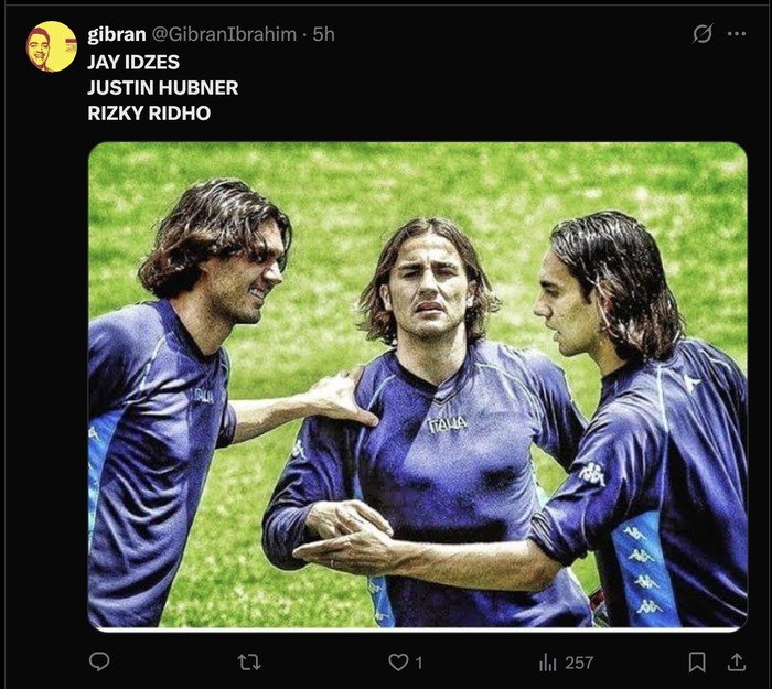 Trio Tembok itu adalah Rizky Ridho, Justin Hubner dan Jay Idzes Foto: X.com