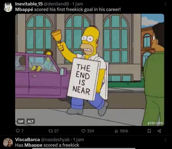 Jadi, ada netizen gol tersebut 'tidak sah' dianggap sebagai free kick. Foto: Twitter/X