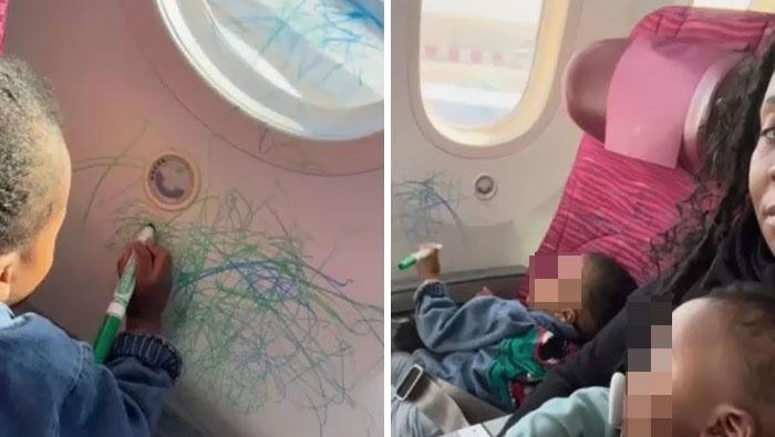 PenumpangΒ bocil menggunakan spidol untuk mencoret-coret kabin. Semoga bisa dihapus ya. Foto: Instagram via Bored Panda