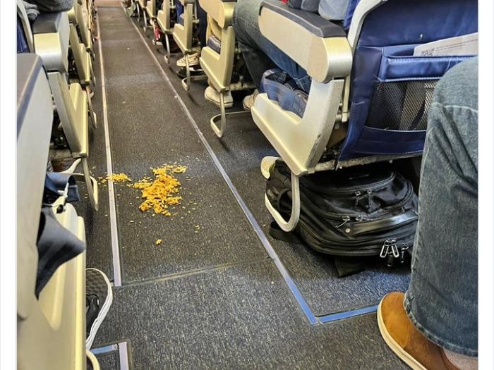 Makan kacang tapi sampahnya dilempar begitu saja ke lantai pesawat. Foto: lolo795 via Bored Panda