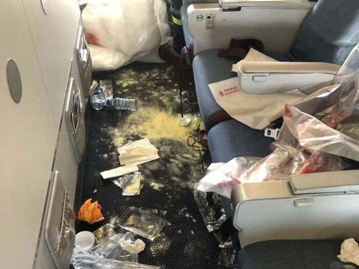 Pesawat dari Montreal, Kanada ke Algeria, Aljazair yang kotor banget. Semua ulah penumpang egois. Foto: DoftheG via Bored Panda