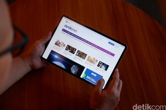 Xiaomi Pad 7 Pro memiliki desain unibody aluminium yang ramping dengan ketebalan hanya 6,18 mm dan bobot 500 gram, sehingga mudah dibawa ke mana saja. Foto: Adi Fida Rahman/detikINET