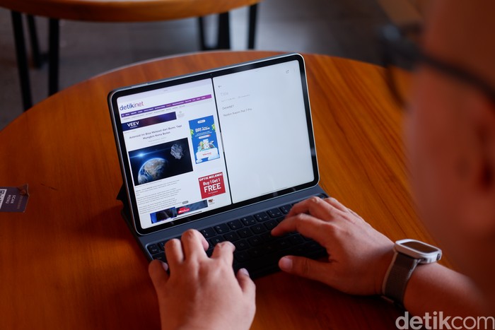 Layarnya berukuran 11,2 inch dengan resolusi 3.2K dan rasio aspek 3:2. Layar ini mendukung HDR adaptif serta telah tersertifikasi TΓV Rheinland untuk kenyamanan mata. Dengan refresh rate hingga 144Hz dan kepadatan piksel 345 ppi, tampilan yang dihasilkan terasa halus, tajam, dan sangat detail, baik untuk bekerja maupun menikmati hiburan. Kalibrasi warna standar studio dan dukungan 68 miliar warna memastikan visual yang akurat dan hidup, menjadikan tablet ini ideal untuk kebutuhan kreatif. Foto: Adi Fida Rahman/detikINET
