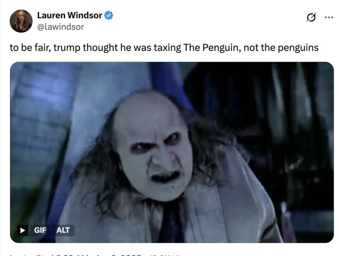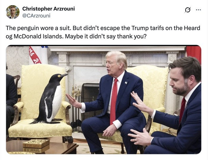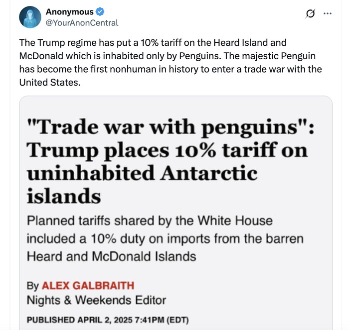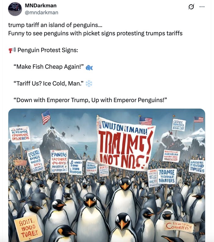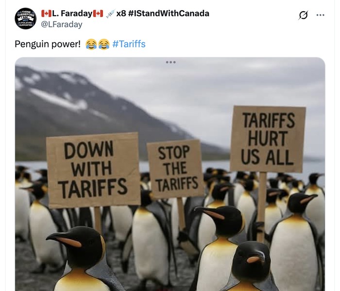 "Tarif melukai kita semua," sebut para penguin ini. Foto: X.com