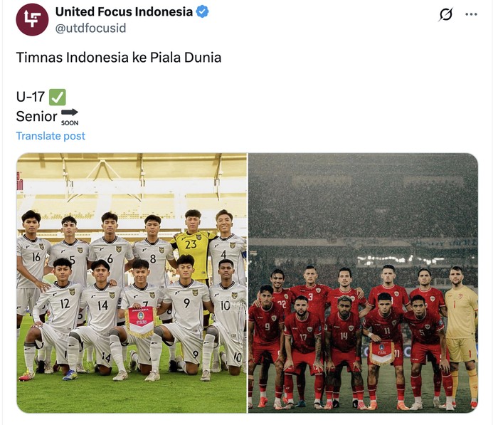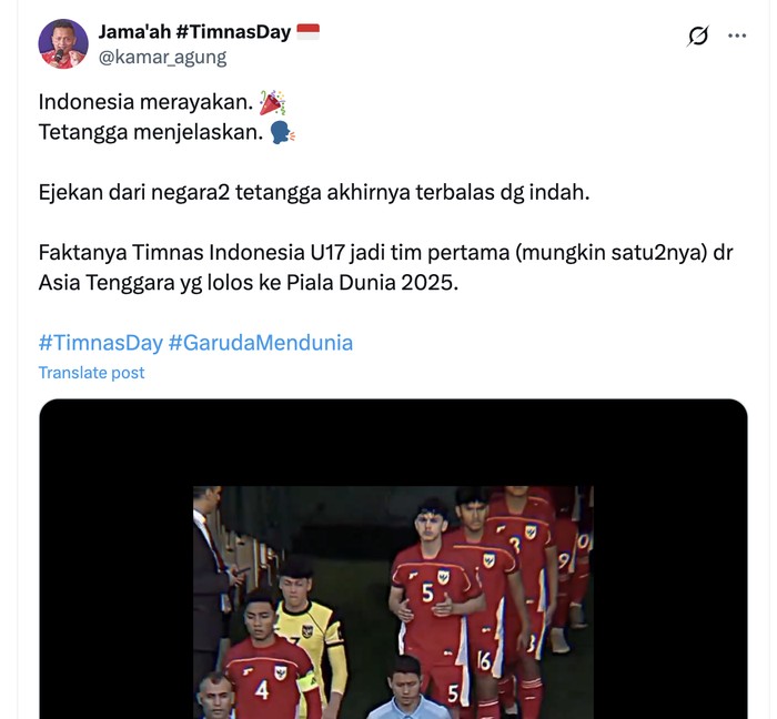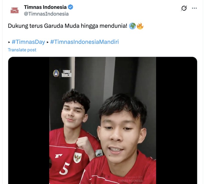 Dukung terus Garuda Muda agar semakin mendunia. Foto: X.com