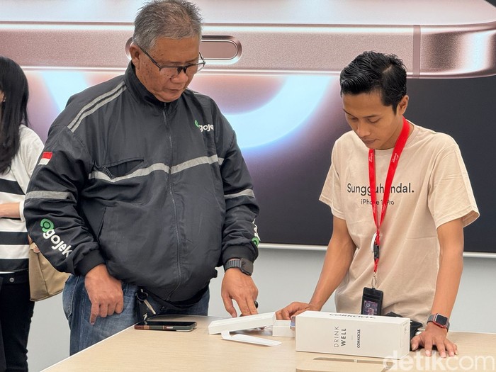 Puluhan pelanggan sudah memadati gerai iBox untuk menjadi yang pertama memiliki iPhone 16 series.Β Β βSenang banget akhirnya iPhone 16 resmi dijual di Indonesia. Saya sudah nunggu lama buat upgrade ke Pro Max,β ujar Excle, salah satu konsumen yang melakukan preorder.Β Foto: Adi Fida Rahman/detikinet